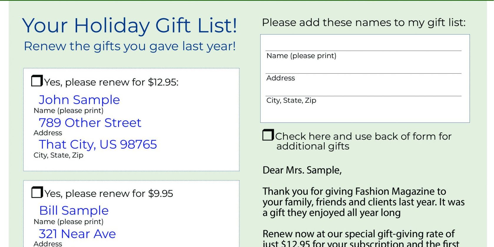 - Templates work great for donor renewals and cold donor mailings and take the guesswork out of holiday gift campaigns